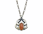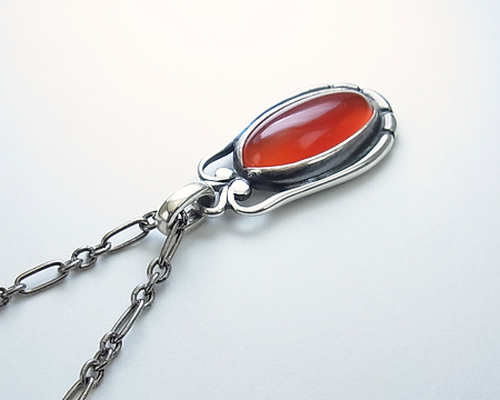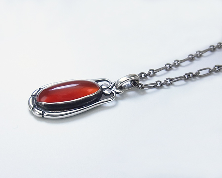アジア限定で、カーネリアンが使われたペンダントです。 少し茶が勝った赤茶系のカーネリアンで透明感があり、光が当たるとテリが出ます。 群青のラピスラズリに比べ、温もりや優雅さを感じますので、どちらかというと、秋冬に似合うお石かもしれません。 服のお色も選ばずお着け頂けます。 カンは固定されていないので、自由に動きます。 |