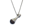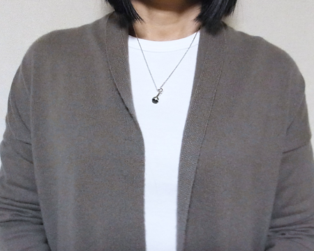 雫が落ちようとする瞬間をとらえたデザインです。 トップにカンをとりつけるのではなく、リングをはめることによってトップが自在に動いて変化のある表情を楽しむことができます。 チェーンを外すと、リング、トップがバラバラになります。 |
