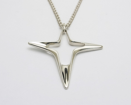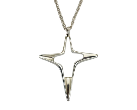ノルディック・クロス として知られるモチーフで、少しデザインの異なる Sサイズ も生産されておりました。 ビジネススーツにも、カジュアルな服装にも似合うパワフルな Mサイズ で、 太めのチェーンも 60cm の使い易い長さの、お勧めの クロスペンダント です。 マットな仕上げですので、品がございます。 |