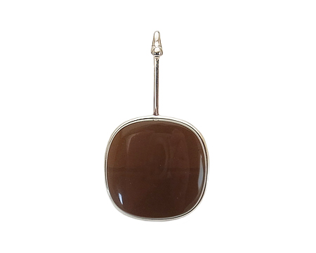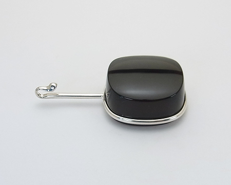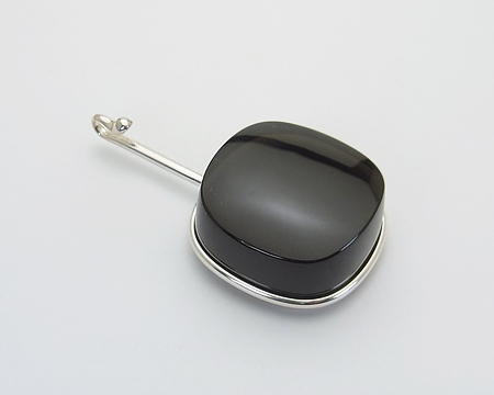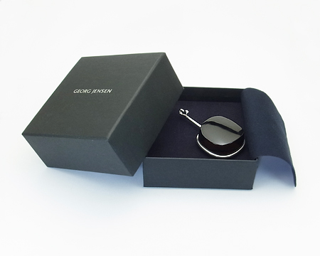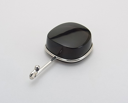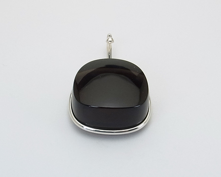 大きさに加え厚みがあり、GJのデュウ・ドロップの中で一番ヴォリュウムのあるペンダントです。 暗い所では黒っぽく、明るい所では薄い焦げ茶に見えます。 長く生産中止でしたが、2017年春 復刻されました。 バランスとしては、当初 ネックリング #160 向けに作られたと思いますが、 #174、 #410 にもマッチします。 お着けになる方の感覚や服装により、お好みで組み合わせをお楽しみ下さいませ。 |
