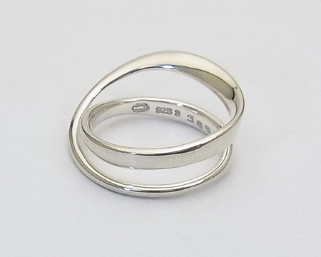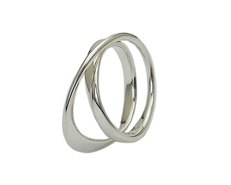 メビウスのリングには、いわゆる ”メビウスの輪” のデザインの #148B と、こちらのより複雑なタブルのループの #369 がございます。 #369 は指にはめる時、どちらの向きにしても良いですし、指元で回しますとデザインの変化が楽しめて面白いです。 Torun の永遠のモダン・デザインです。 着け心地は、通常サイズで大丈夫です。 48サイズから60サイズまで生産されています。 |