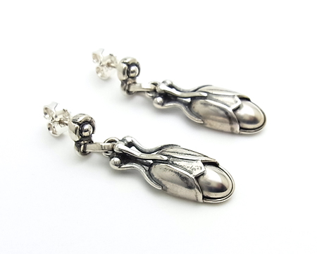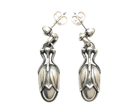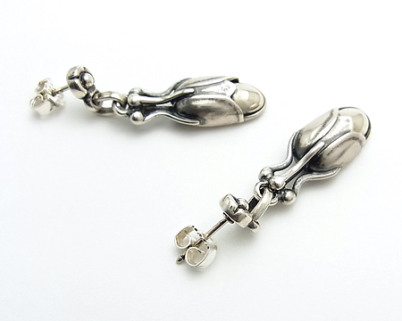 お石付きでないオールシルバーは地味だと思われがちですが、服のお色を選びませんし、また、他のアイテムにも合わせ易いという長所がございます。 その上、デザインの良さがしっかり伝わり、根強い人気がございます。 左右の燻し具合は異なっております。 |