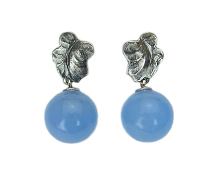 2012年秋、ピアス#50Cに鮮やかなブルージェイドが加わりました。 燻しが効いた1枚のブドウの葉に、実のようにお石が1粒ぶら下がって揺れています。 デザインはクラシカルですが、お石のブルーにより落ち着きのある新鮮さを感じます。 どの年代の方にもお着け頂きたい、おしゃれで品の良いピアスです。 グレイムーンストーンをお取り寄せできます。 |