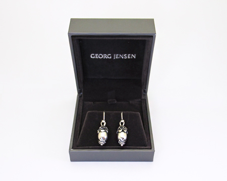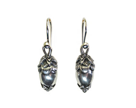 ペンダントを小さく簡略化したしたデザインで、上部にフックを取り付けています。 2024年と同じようにラグビーボールのような形のまるごと1粒のシルバーストーンの上下を、松かさのようなモティーフで飾っていて、ドングリのようなGJヘリテイジらしいオーガニックなデザインです。 適度な燻しが施されておりますので、ギラギラ感は無くシックです。 また、見た目よりずっと軽く、動きにつれて揺れるのも心地良いです。 カジュアルにTシャツでもまたドレスにも、オールシルバーは不思議に何にでも似合ってしまうアイテムです。 お箱は通常のタイプで、栞は付いておりません。 |