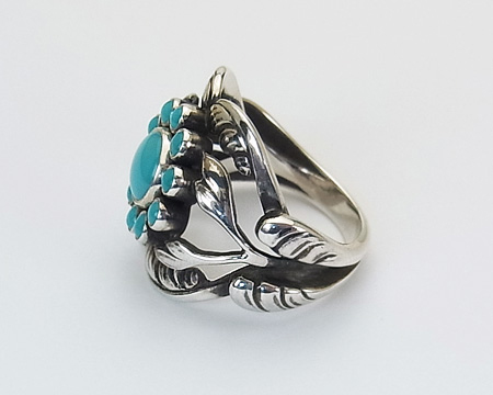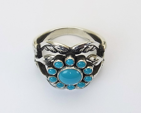 ムーンライトシリーズとして少しの間生産された #10 のターコイズです。 ターコイズといって思い浮かべるブルーのお色目より濃いめで、落ち着いて渋く、美しいお石です。 11個のお石が揃っていてフクリン留めも綺麗です。 ターコイズはムーンストーンに次いで高価なお石で、リングとしては希少です。 USED ですが、使用感は全くなく、新品に近いです。 親指以外のどのお指にはめても美しく映えます。 |