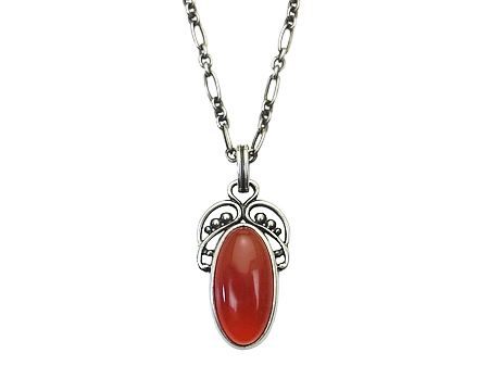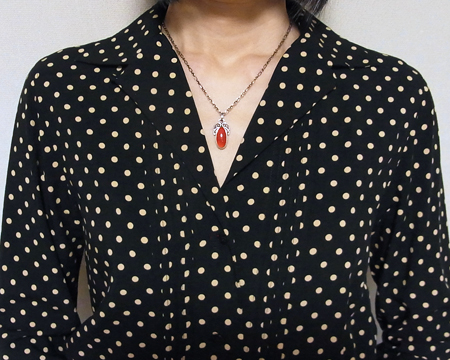 1915年のデザインが元になった、アールヌゥヴォーらしいオーガニックで曲線が美しいペンダントです。 また、赤茶の透明感のあるカーネリアンが良くマッチしています。 USED ですが、ほとんど使用感がなくお石も美しいので UP することに致しました。 |