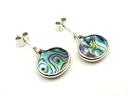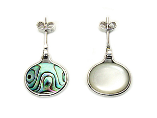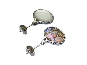 変化に富んだ パウア貝 と表情のある マザーオブパール の両面をお楽しみ頂けるリバーシブルタイプのピアスです。 オーヴァル型の程よいサイズのシェルです。 |