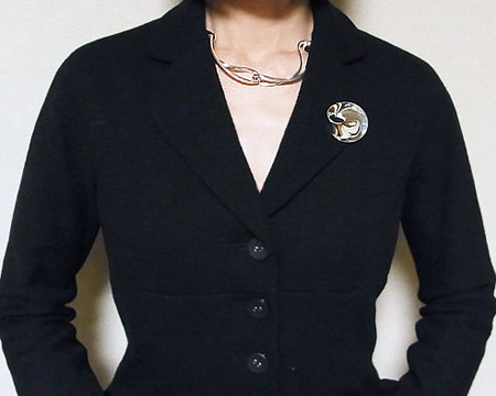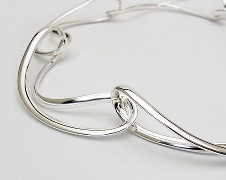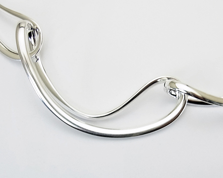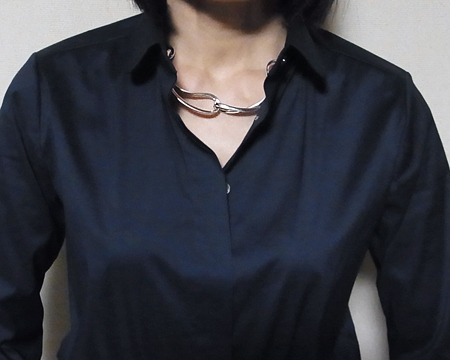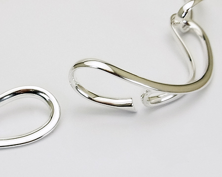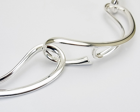 GJ工房創立100周年の記念の年にデザインされたインフィニティは 「無限」 と 「8の字」 を表現し、さまざまなアイテムが生産されました。 当時の15リンクのネックレスはバングル同様シルバーをたっぷり使った美しいフォルムが魅力ですが、唯一 重いことが難点でした。 2012年に作られたこちらの6リンクは、美しいフォルムはそのままに ぐっと軽くよりモダンになりました。 B・ガブリエルセンの#13185のようなシャープでかつ女性らしい、嬉しいチョーカータイプです。 長さ42cm をお取り寄せできます。