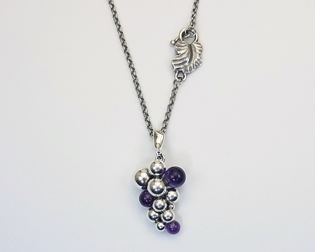 ブドウのデザインの飾り石の中で、ブラックアゲイトはシャープな印象がございますが、アメシストはブドウらしくて、柔和な雰囲気を感じます。 ラージサイズよりも、普段にお気軽に着けて頂けます。 3粒のアメシストはお色の濃さや透明度に違いがあり、内包物が見られます。 生産中止となったのが、とても残念です。