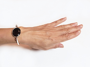 輝きのある黒のオブシディアンと表情のある白のマザーオブパール。 Night and Day と呼ばれるシリーズの一つです。 黒と白のリバーシブルは、手首まわりにアクセントを与えてくれます。 Sサイズは手首の細い方に向いています。 普通サイズより若干細い方でぴったりフィットがお好きという方にも合います。
